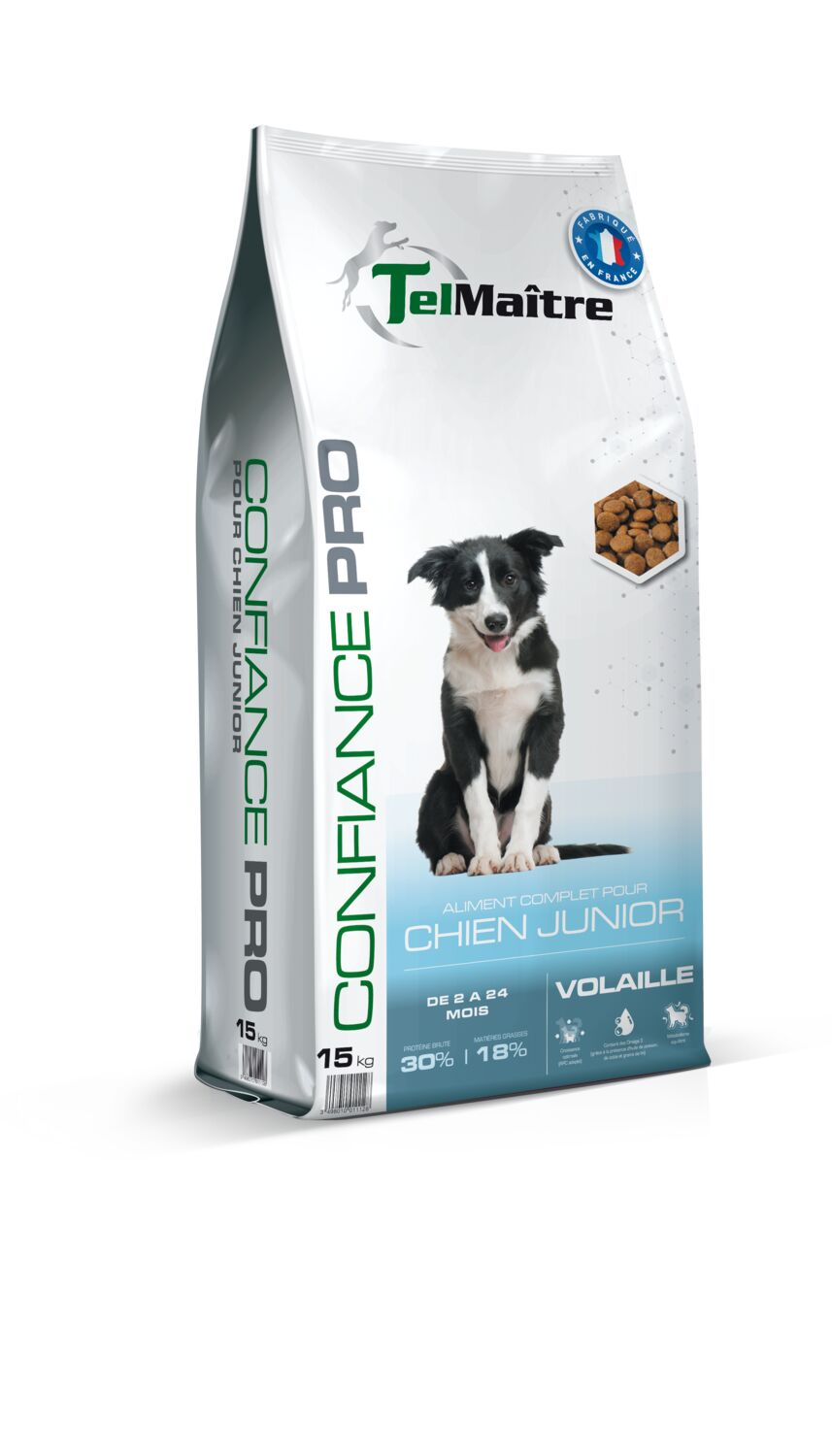 Pendant sa première année de vie, votre chiot a besoin d’apports spécifiques pour contribuer à son bon développement. L’aliment CONFIANCE JUNIOR a un apport en protéine de 30% ce qui permet d’apporter l’énergie nécessaire à votre chiot pour une croissance optimale