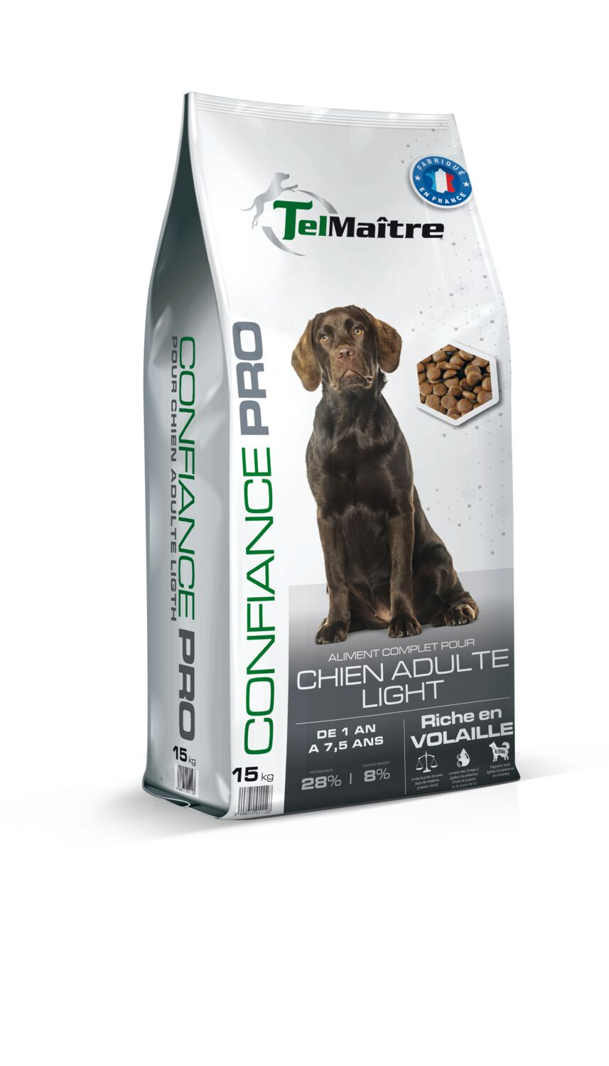 L’aliment chien Confiance Light race répond aux besoins spécifiques des chiens ayant tendance à l’embonpoint. Cet aliment a un apport en protéine de 28% qui permet d’apporter l’énergie necessaire à votre chien.