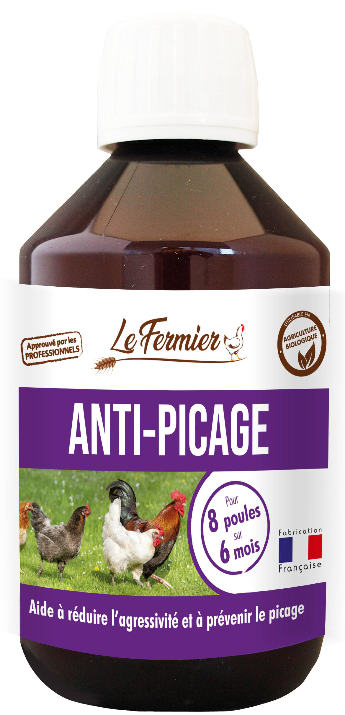 L’anti-picage est un aliment complémentaire destiné aux volailles (poule, canard, dinde, oie…). Il aide à réduire l’agressivité et à prévenir le picage des poules. N’altère pas le goût, ni l’odeur des œufs