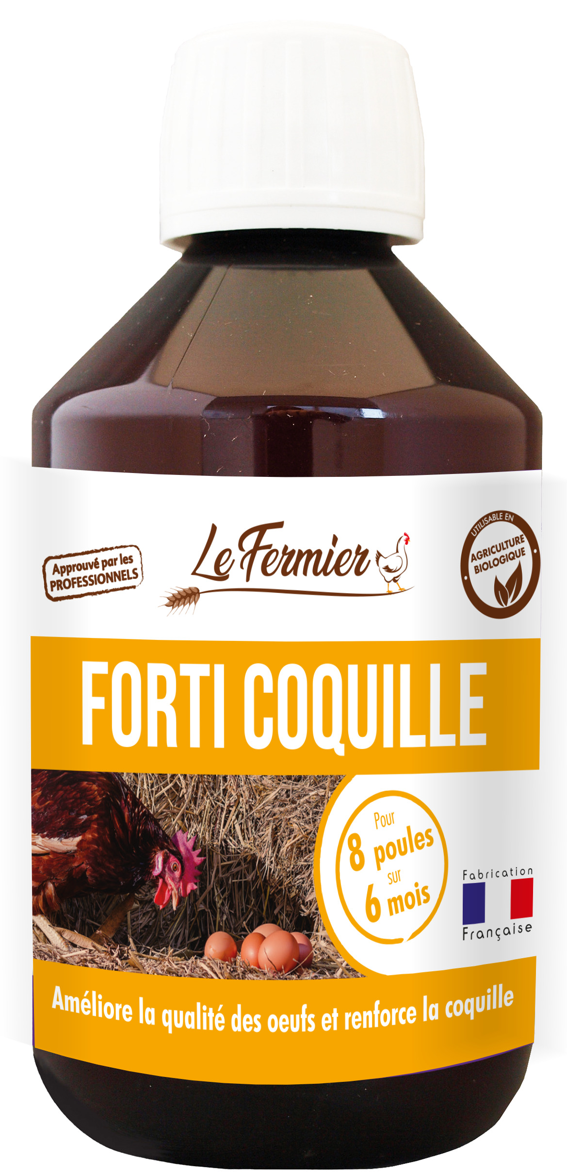 Forti Coquille est un aliment complémentaire destiné aux volailles (poules, canard, dinde, oie, …). Il est riche en vitamine D3 et en calcium afin de renforcer la coquille et améliorer la qualité des œufs. N’altère pas le goût, ni l’odeur des œufs