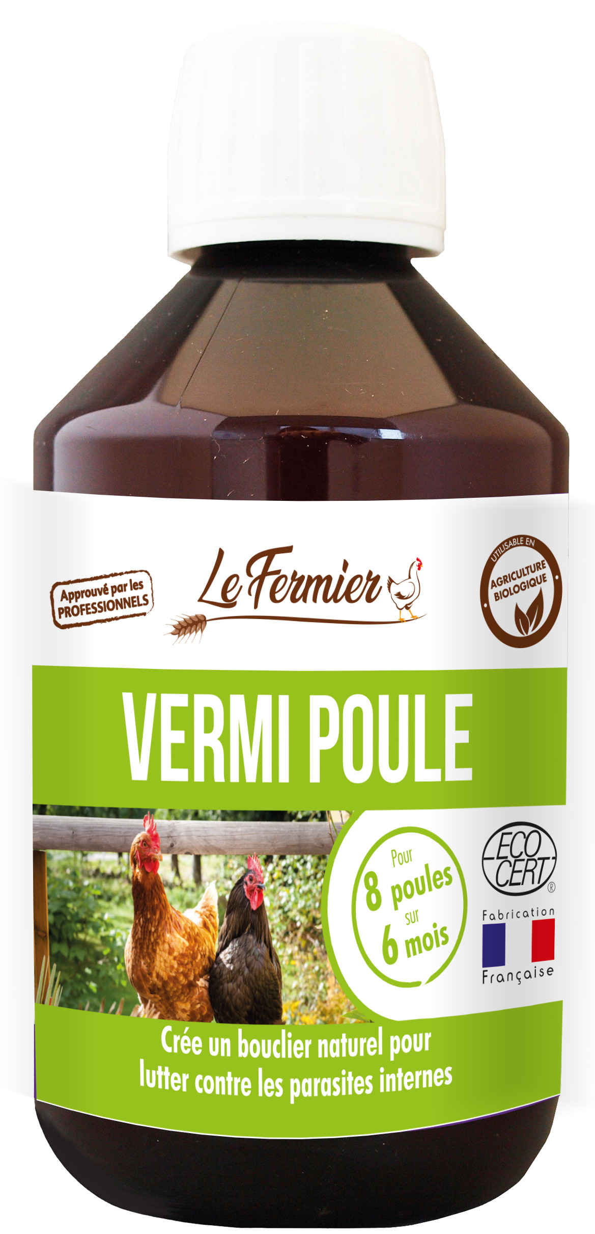 Aidez vos volailles à lutter contre les parasites internes grâce à Vermi Poule, spécialement formulé pour améliorer la résistance naturelle des volailles contre le parasitisme interne. Cet aliment complémentaire formera un bouclier naturel efficace. Vermi Poule n’altère ni le goût, ni l’odeur des œufs et de la chair.