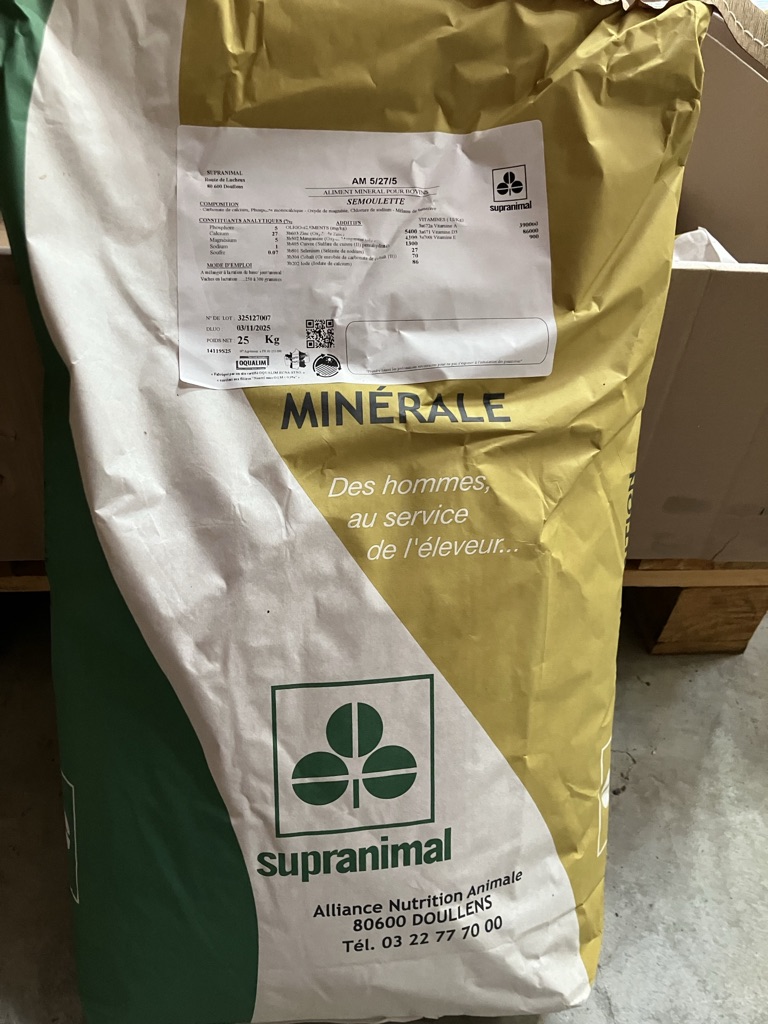 zinc (oxyde de zinc) 5400 ; manganèse (oxyde de manganèse) 4300 ; cuivre (sulfate de cuivre pentahydraté) 1300 ; sélénium (sélénite de sodium) 27 ; cobalt (gr enrobés de carbonate de calcium) 70 ; iode (iodate de calcium) 86