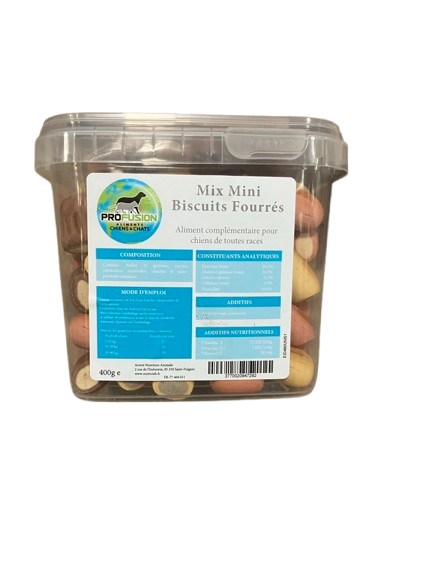 Les biscuits fourrés pour chiens sont parfaits pour les entraînements et le dressage de votre chien. Leur petit format vous donne la possibilité de récompenser votre chien avec de petites friandises. Le fourrage à la viande de ces biscuits apporte une appétence supplémentaire pour votre chien. Ces biscuits sont parfaits en complément d’une alimentation saine et équilibrée pour votre chien.