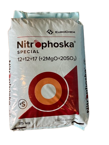 12% d'azote (dont 4,8% d'azote nitrique et 7,2% d'azote ammoniacal) ; 12% d'anhydide phosphorique soluble dans le citrate d'ammonium neutre (dont 7,8% soluble dans l'eau) ; 17% d'oxyde de potassium soluble dans l'eau ; 2% d'oxyde de magnésium (dont 1,6% soluble dans l'eau) ; 20% d'ahydride sulfurique (dont 16% soluble dans l'eau) ; 0,02% bore ; 0,01% zinc