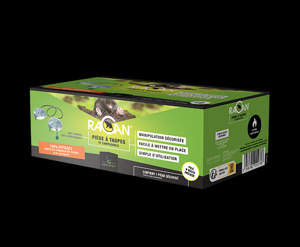 Le RACAN® PIÈGE A TAUPES ET CAMPAGNOLS permet de faire face à l’invasion des taupes et campagnols. Ce piège pyrotechnique prend en compte le comportement de l’animal. Sa mise en place nécessite de dégager l’ouverture d’une taupinière ce qui contrarie l’animal qui a horreur des courants d’air dans les galeries. En voulant refermer l’ouverture, la taupe va déclencher la détonation du piège et va être éliminée.