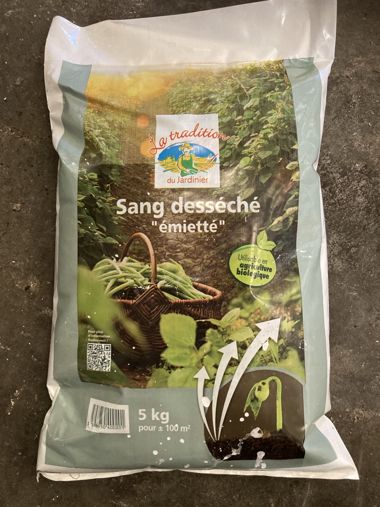 Le sang desséché est tout indiqué dans les terres pauvres ou carencées en fer. Il est souvent associé à la corne broyée, dont l’action est plus prolongée dans le temps.