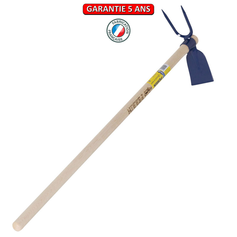 Le côté panne permet de travailler en surface des terres meubles, de désherber en coupant les racines, et de butter des plantations. Alors que le côté fourche est utile pour casser la croûte du sol, extirper les mauvaises herbes.